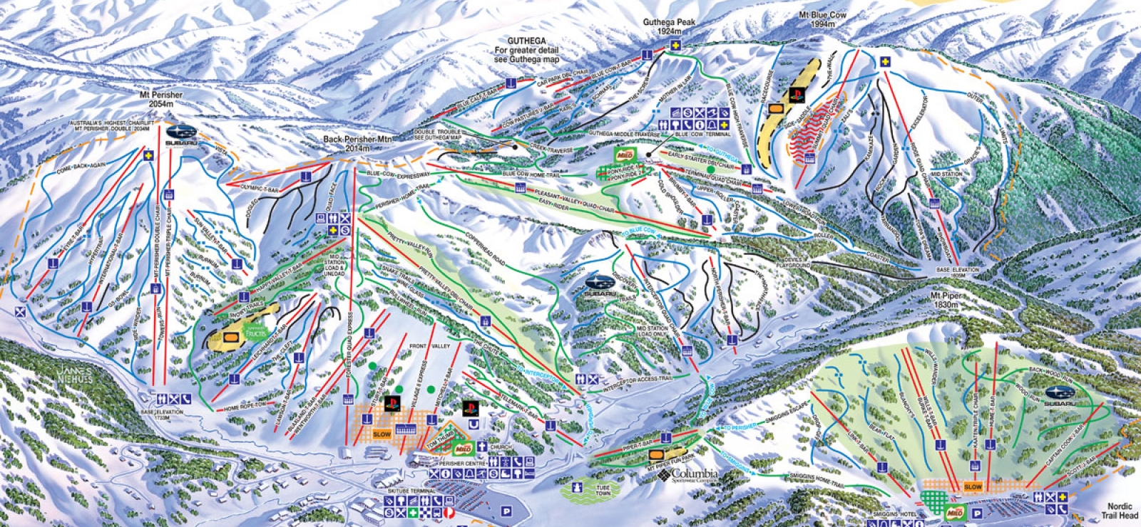 Perisher swoją nazwę zawdzięcza okrzykom, które dawniej wydawali pasterze, przeprawiający się przez najwyższe przełęcze rozciągających się dookoła gór: „perisher!” („porażający”). Rzeczywiście, sięgające nieba wierzchołki okolicznych szczytów – w tym Guthega (1640 m n.p.m) i Mt Blue Cow (1890 m n.p.m) właśnie takie robią wrażenie... Niemal alpejska sceneria idzie w Perisher w parze z surowym, alpejskim klimatem. Zimą (czyli naszym latem) pokrywa śniegowa jest tu na tyle gruba, że możemy cieszyć się magią białego szaleństwa. Trasy zjazdowe w Perisher są zróżnicowane, dzięki czemu niezależnie od naszych umiejętności będziemy mogli szusować bezpiecznie: 22 procent tras przeznaczonych jest dla początkujących, 60 procent – dla średniozaawansowanych, a 18 – dla zaawansowanych.