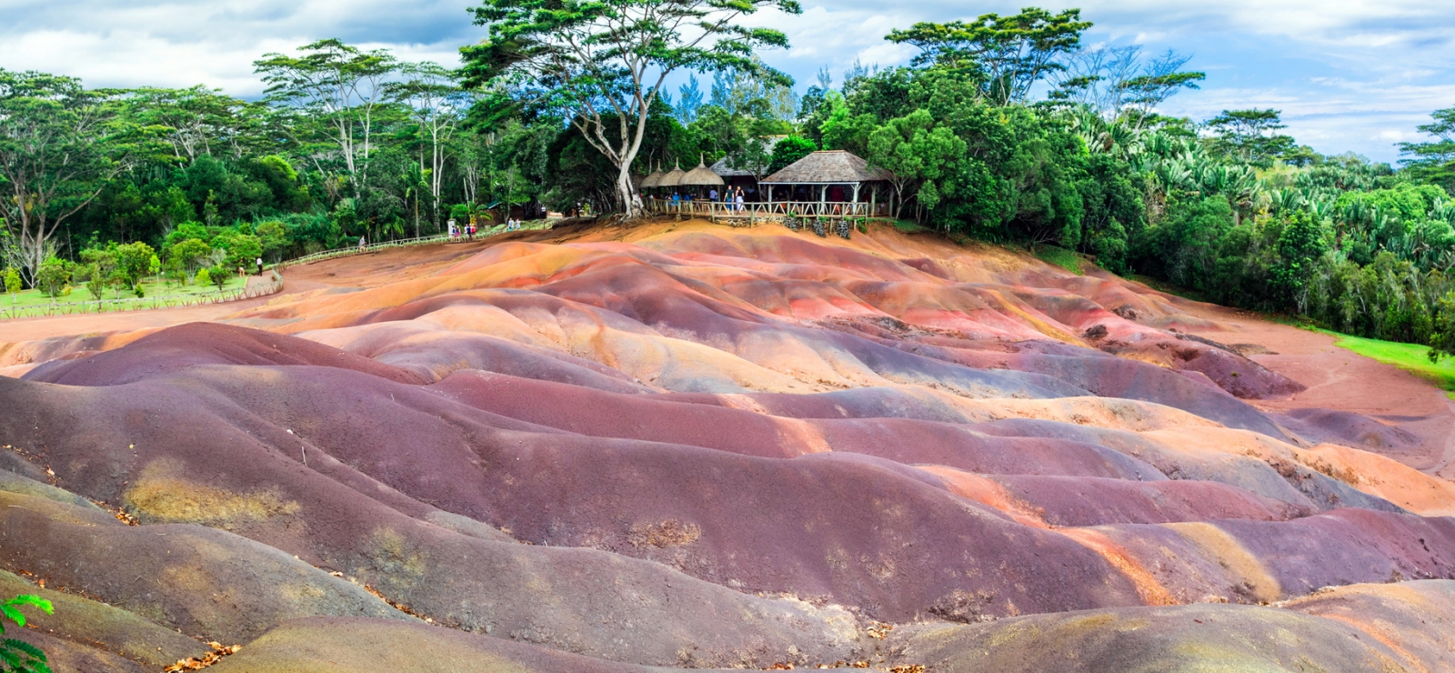 Chamarel - „Ziemia 7 Kolorów” to kolejny zakątek Parku Narodowego Black River Gorges, którego po prostu nie wolno przegapić. Ten niewielki rezerwat słynie z tęczowych wzgórz, które powstały dzięki intensywnemu i gorącemu życiu dawnych wulkanów wyspy. Kolejne warstwy lawy, zastygające powoli przez miliony lat, stworzyły tu fascynujący, naturalny obraz. Układające się naprzemiennie barwne pasma we wszystkich kolorach tęczy można podziwiać godzinami, obserwując unikalną grę świateł od wschodu do zachodu słońca.