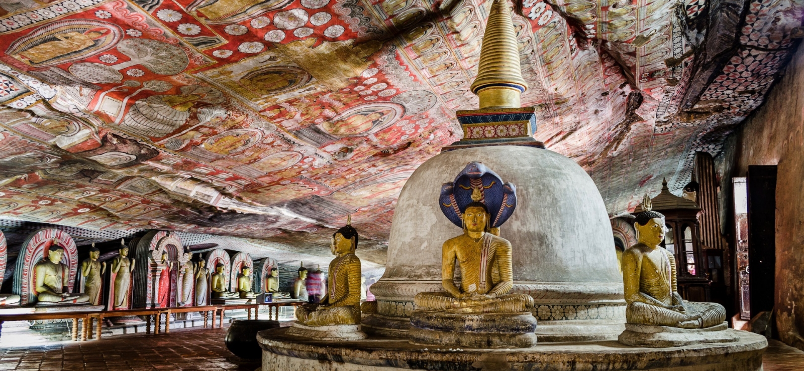 Świątynie w Dambulli są unikalne – ponad 2000 lat temu pięć osobnych „kaplic” w ciemnych jaskiniach stworzyli władcy wyspy. W jaskiniach, zawieszonych 150 metrów nad ziemią, znajdziemy ponad 120 posągów i naskalnych malowideł samego Buddy, które zachwycają precyzyjnym wykonaniem i intensywnością kolorów.