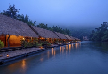 Hotel składa się z bambusowych chatek położonych na dryfuących tratwach, które zacumowane są do pomostu wzdłuż brzegu rzeki Kwai w prowincji Kanchanaburi (ok. 30 km od granicy z Birmą). Otoczenie w tym miejscu jest zdominowane przez bujną zieleń, która porasta górzyste tereny, tworząc prawdziwą dżunglę. Pokoje wyposażone są w drewniane meble nawiązujące stylem do lokalnych tradycji, wygodne łóżka z moskitierami, własne łazienki, wiszące hamaki na tarasie oraz lampy naftowe (w hotelu nie ma elektryczności).
